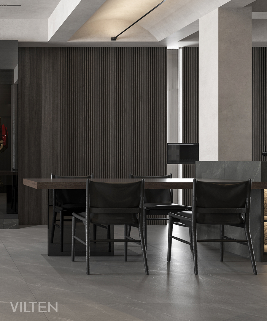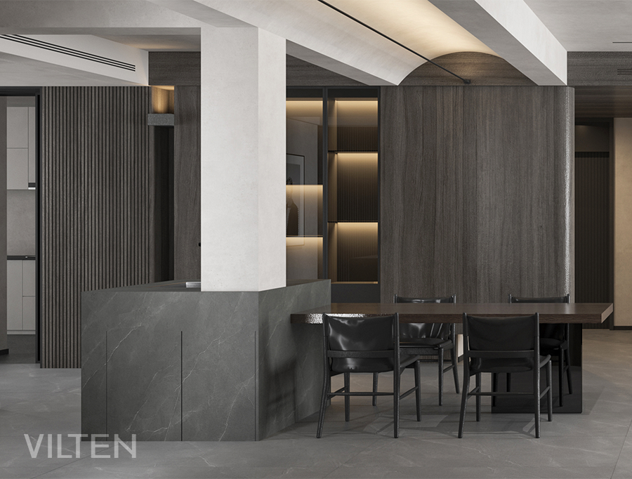 深邃的理石地面與灰胡桃木作為空間背景,襯托一幀幀生活的場(chǎng)景,徐徐盈溢。嫻靜自得,氤氳升騰于湛湛心空之上。內(nèi)斂,依然有著生動(dòng)的平靜,心的變奏曲悄然涌生出細(xì)膩不息的力量。